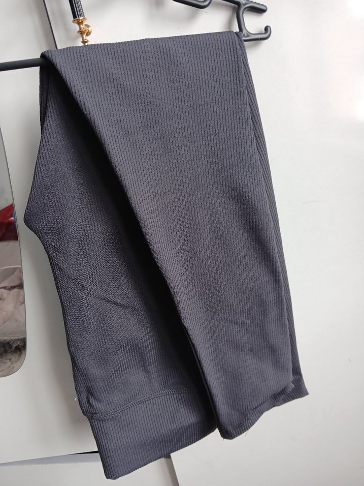 Gri renkte, pilili ve normal midi boyda, yumuşak sentetik kumaştan yapılmış kadın taytları, günlük rahat kullanım için uygundur.