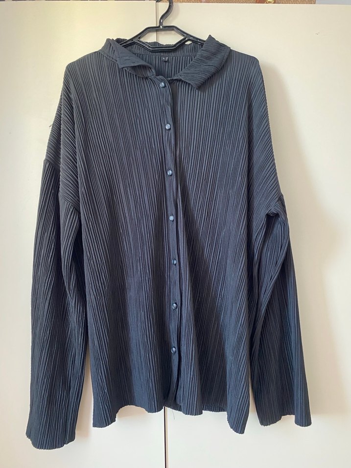 Gri renkli, keten kumaştan, pilili ve uzun kollu bir gömlektir. Salaş kesimi ve midi boyu ile ofis kullanımı için uygundur.