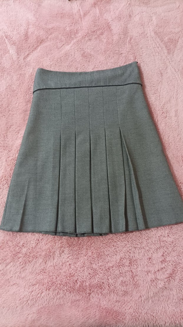 Gri Pilili Midi Kadın Etek