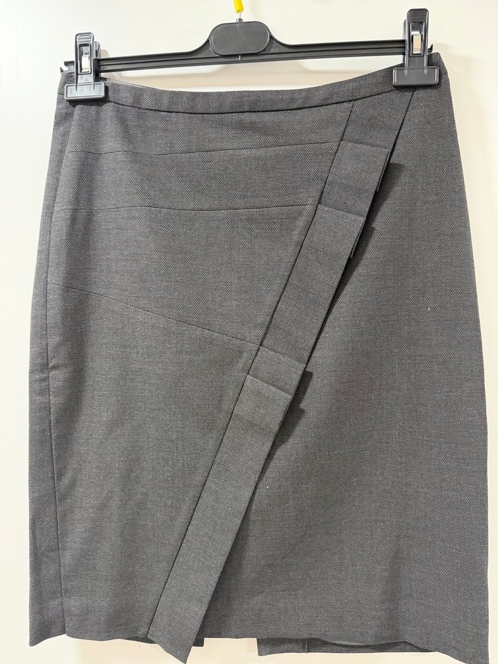 Altınyıldız Gri renk pilili midi kalem etek, düz kesim. Ofis için şık ve çağdaş bir tercih sunar.