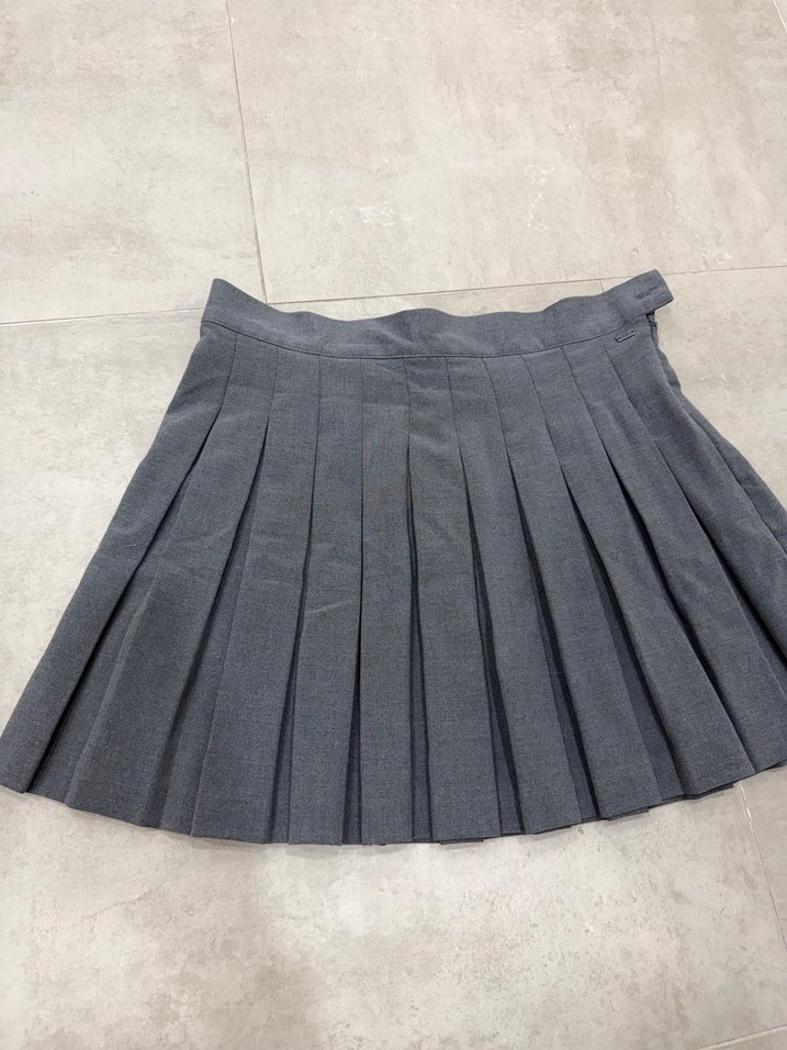 Gri renkte, sentetik kumaştan yapılmış pilili ve dar kesim mini etek. Minimalist tarzda, günlük kullanıma uygun normal uzunlukta.