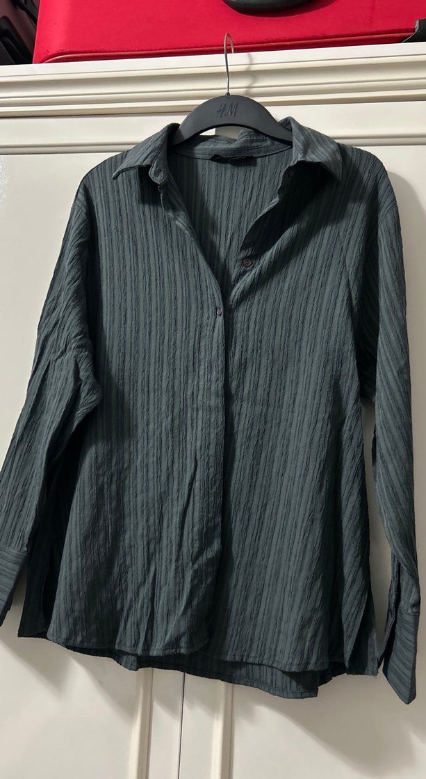 Gri keten kumaştan yapılmış, pilili detaylara sahip uzun kollu ve yakalı kadın gömleği. Rahat kesimi ve normal boyu ile günlük kullanıma uygundur.