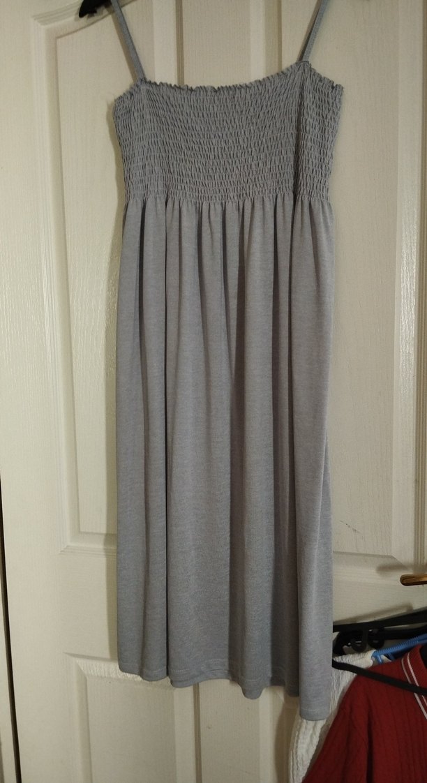 Gri renkte, penye kumaştan uzun ve bol kesim pilili detaylara sahiptir. Minimalist ve desensiz tasarımı günlük kullanıma uygundur.