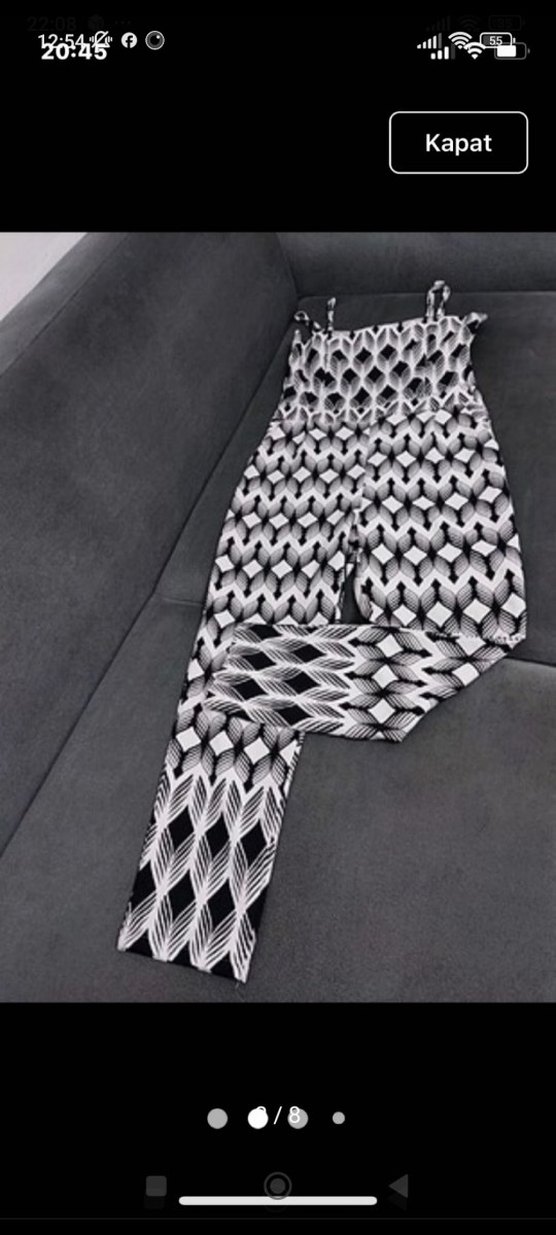 Gri renkli, piliseli detaylı uzun kadın kumaş tulum Düzenli kesimi ve batik desenli, günlük kullanıma uygun avangart sokak stili L beden XL bedenede olur esnektir