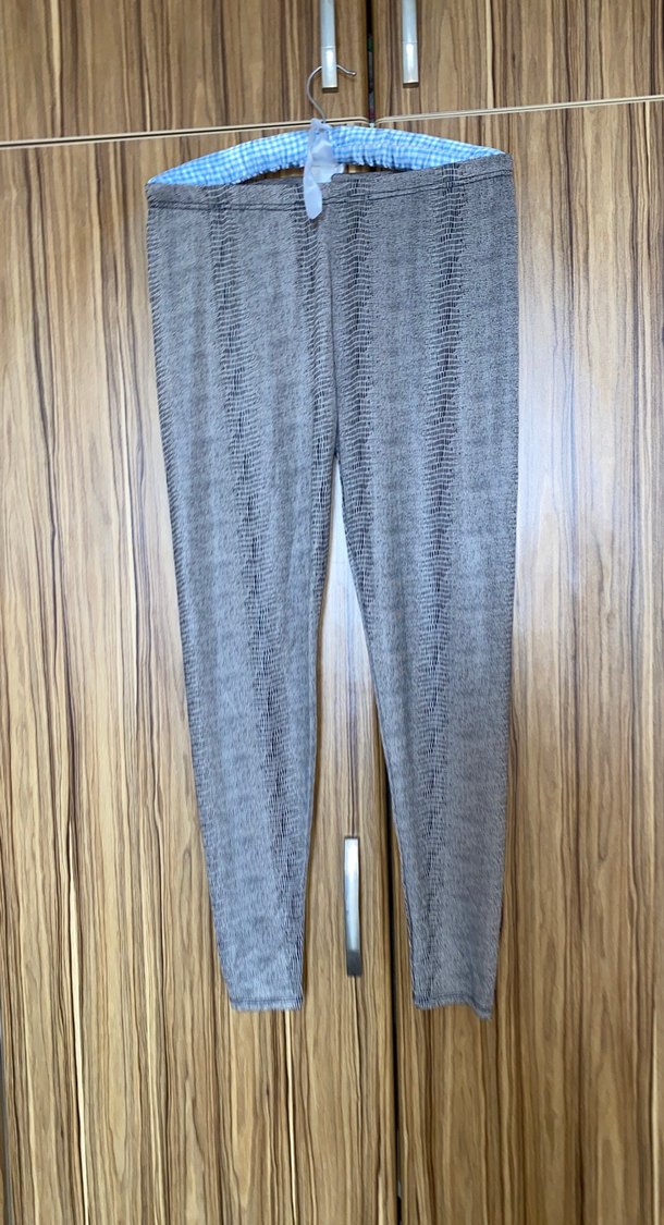 Gri renkte, piliseli dokulu, yumuşak sentetik kumaştan yapılmış, rahat kesim kadın tayt.