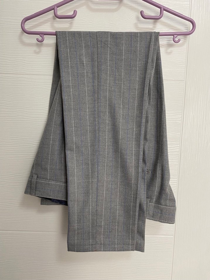 Gri renkte, piliseli detaylı midi boy erkek kumaş pantolon, normal kesim ve ofis ile günlük sokak stiline uygun.
