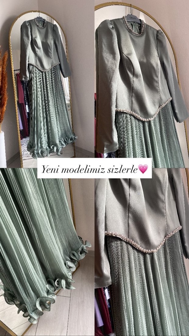 Gri Piliseli Uzun Abiye Elbise - Görsel 2