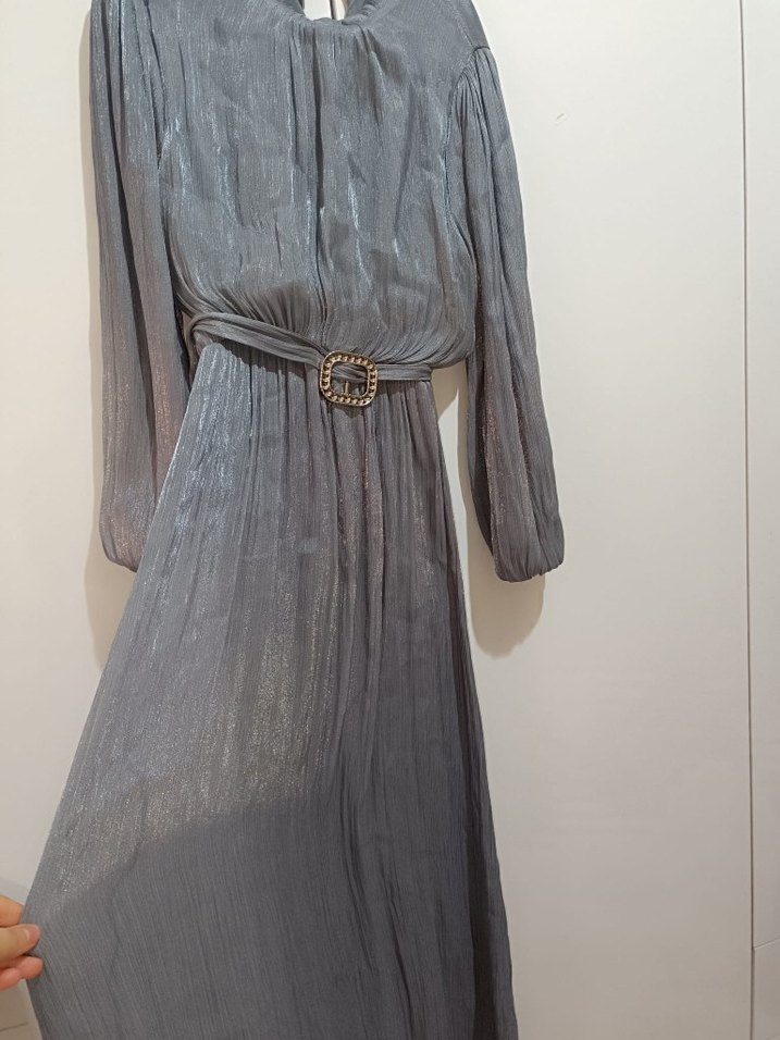 Gri renk uzun abiye elbise sadece 2 saatliğine giyildi sorunsuzdur 40-42 bedene olur