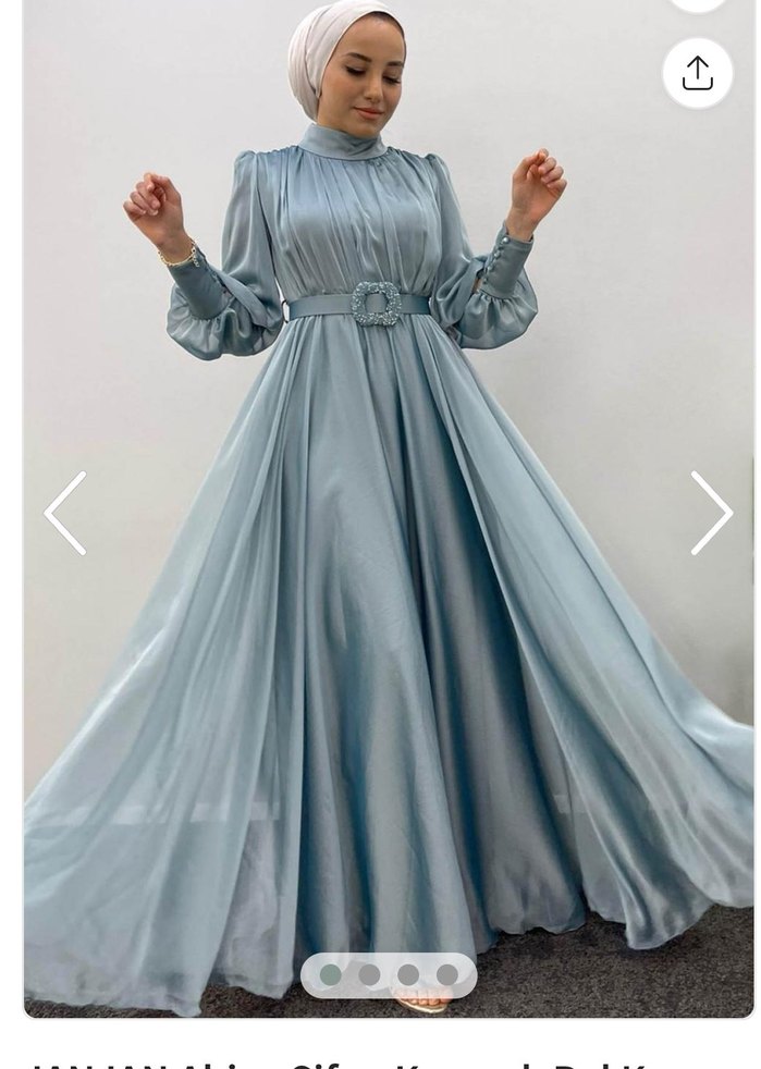 Gri piliseli uzun abiye elbise, yüksek yakalı ve bol kesimdir. Vintage ve bohem tarzıyla düğünlere klasik şıklık katar.
