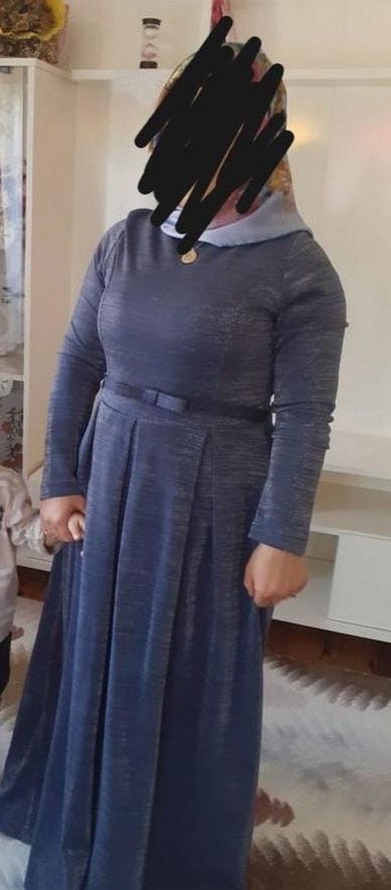 Uzun gri elbise, kayık yaka, uzun kollu ve piliseli etekli bol kesimle modest vintage tarz sunar. Günlük kullanım için uygundur. 1 defa giyildi simli kumaş iç göstermez 40 beden sıfıra yakın