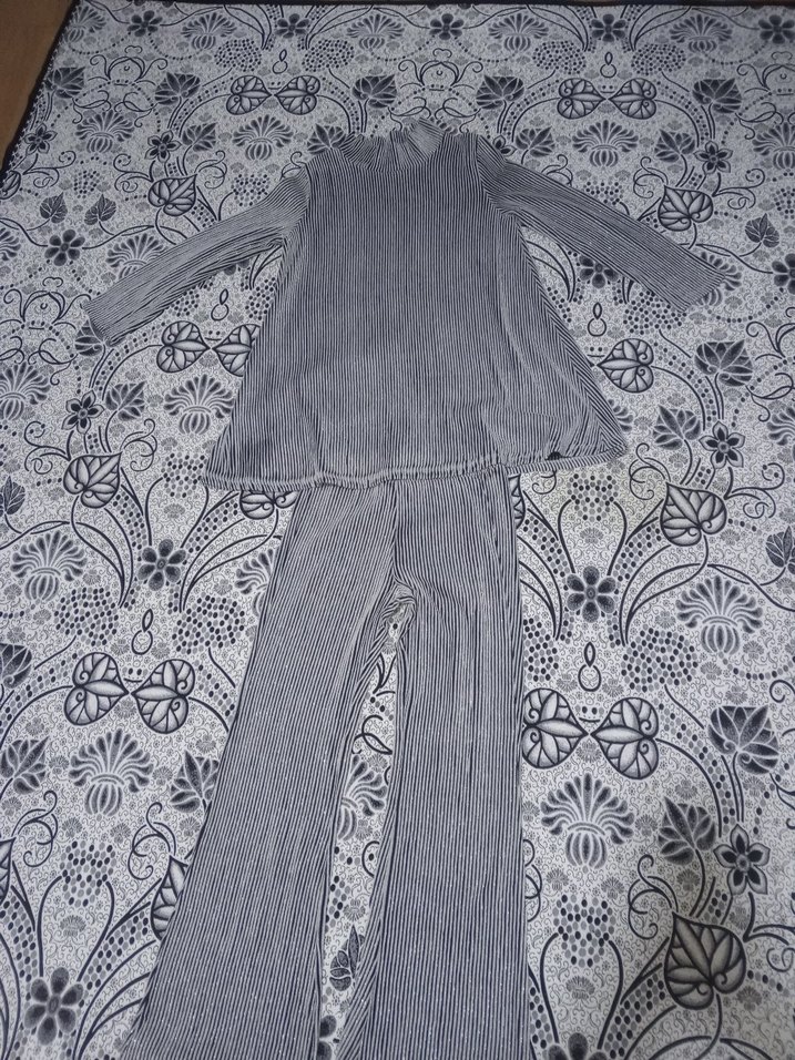 Gri renkli, piliseli, keten kumaştan yapılmış, bol kesim uzun kollu ve kayık yaka kadın takım. Bohem tarzına uygun, günlük kullanım için idealdir. s m iki bedende giyebilir