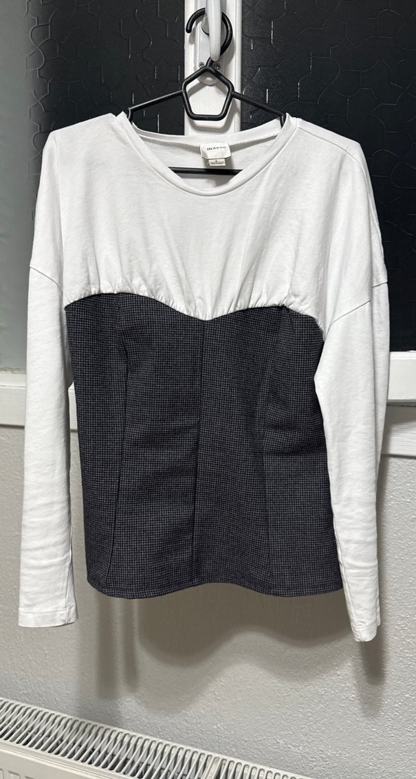 Gri renkte, piliseli detaylı, uzun kollu, ince kesim ve keten kumaştan yapılmış