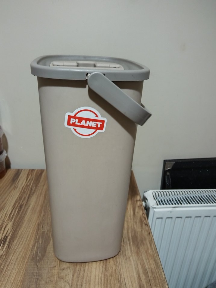 Gri renkli Planet süpürge kutusu, sağlam sapı ve kompakt tasarımıyla kolay kullanım ve saklama sağlar.