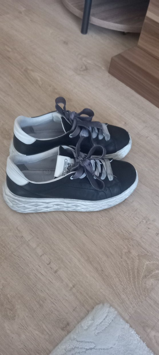 Gri renkte, platform topuklu ve bağcıklı kadın spor ayakkabısı. Kauçuk tabanlı, sokak modasına uygun rahat bir model.