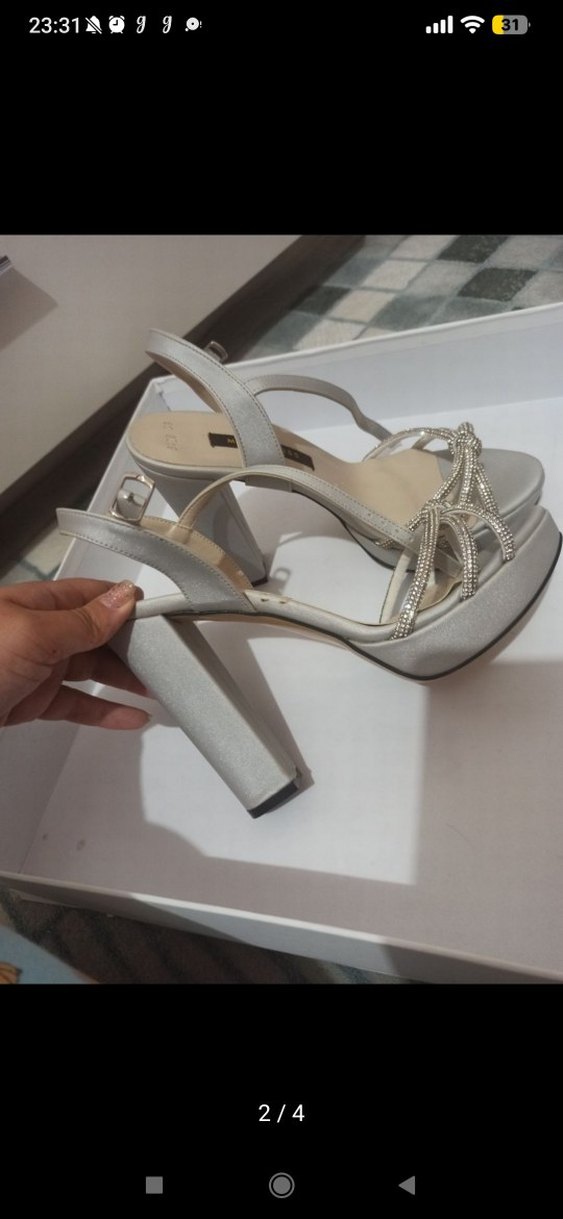 Gri sekiz cm çok rahat platform topuklu ayakkabılar, tokalı kayış ve modern klasik tarzıyla düğünler için şık ve gösterişli bir seçenek sunar. Kauçuk malzemeden üretilmiştir. Rahattır bir kere giydim 39 numara ama 38 e de olur