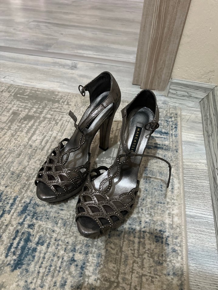 Gri desenli platform topuklu ayakkabılar, tokalı kayışlarla tamamlanmış, koyu goth tarzında romantik buluşmalar için uygun. Kauçuk tabanlı, klasik ve Paris tarzı bir şıklık sunar. 37 numara giyorum ama kalıbından dolayı 36