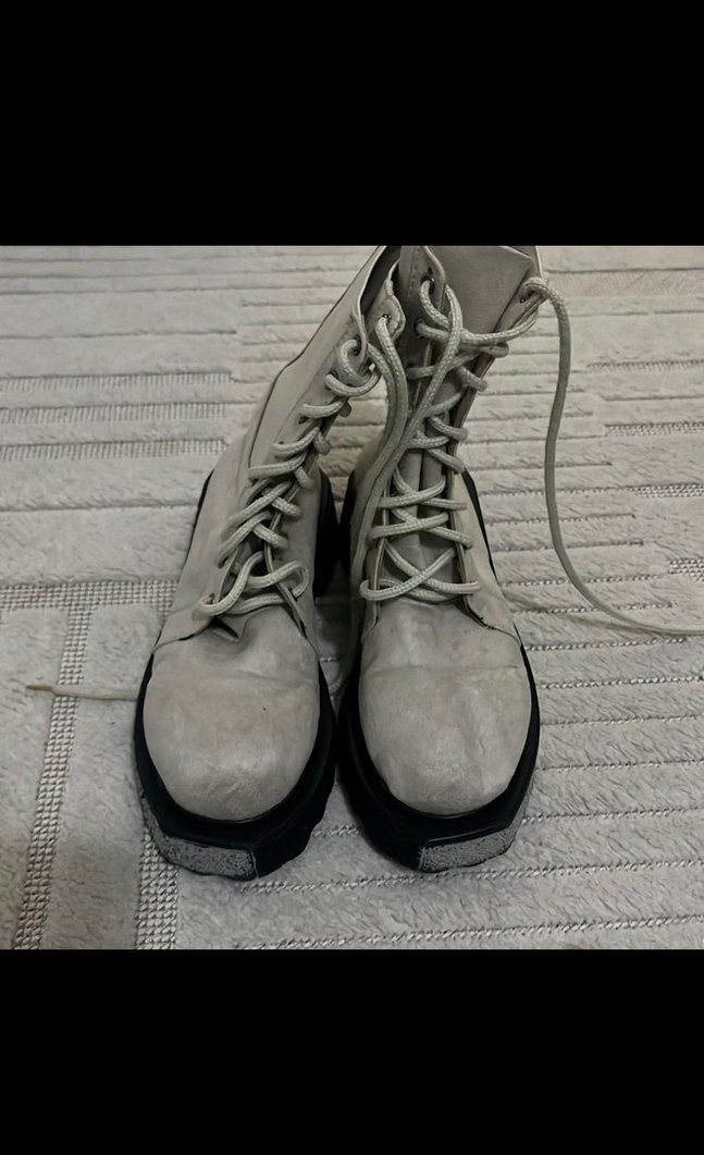 Gri platform topuklu botlar, lastik malzemeden ve bağcıklı tasarıma sahip. Grunge punk ve normcore tarzlarını birleştirerek zahmetsiz şıklık sunar. Günlük kullanım için uygundur. Hiç giyilmedi.