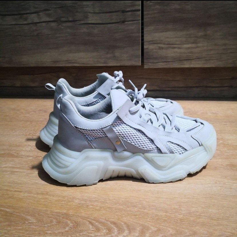 gri renklerde, kauçuk tabanlı ve bağcıklı platform spor ayakkabı. Sokak stili ve spor görünüm için rahat ve trend.