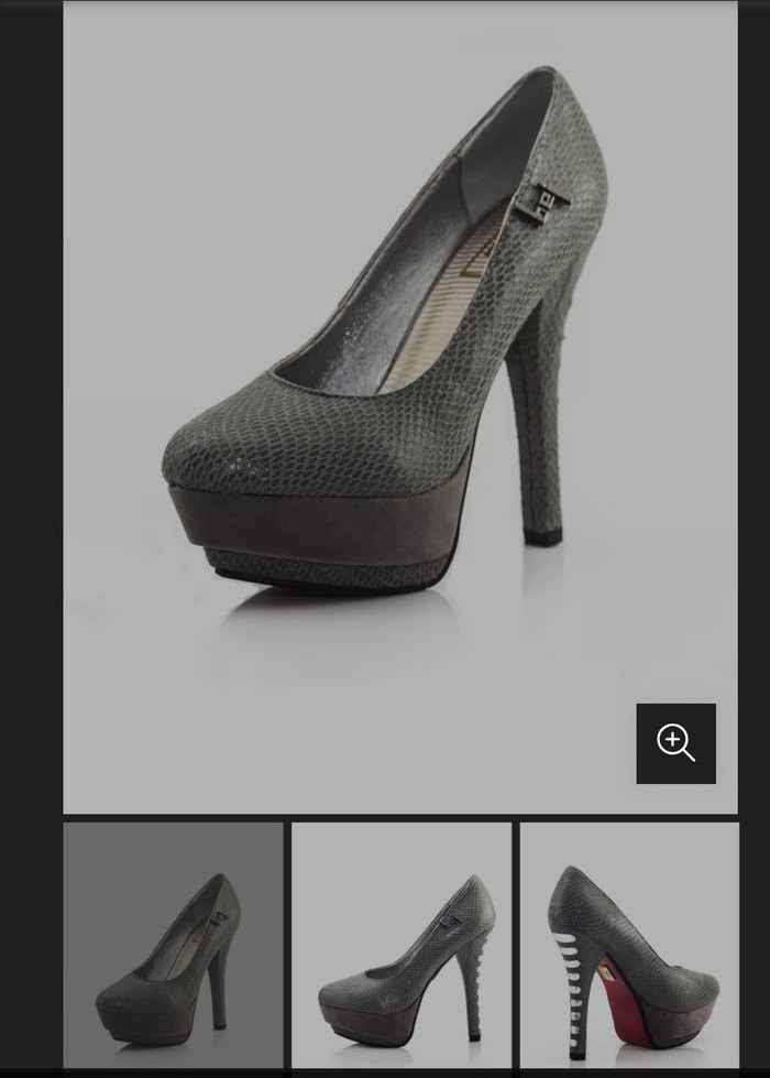 Gri yılan desenli stilettolar, platform topuk ve kemer detayına sahip, kauçuk malzemeden üretilmiştir. Ofis için cesur, çağdaş bir tarz sunar.