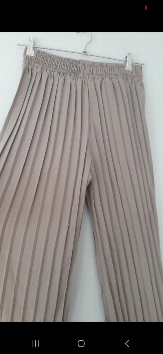 Gri renkte, pliseli ve uzun kesim kadın kumaş pantolon. Rahatlık sağlayan sentetik kumaştan, bol kesimdir. bel 38 , boy 95cm