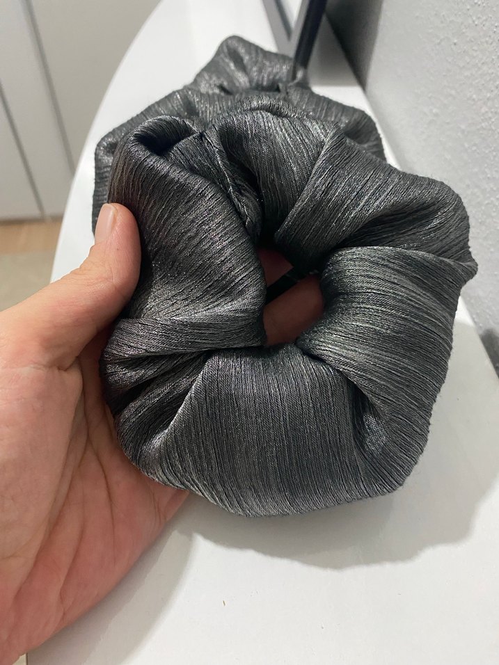Gri renkli, pliseli keten kumaştan yapılmış saç tokasıdır. Çağdaş ve avangart tarzı yansıtır, şıklık katar. ♀️Kendi dikimimdir tekli fiyatıdır