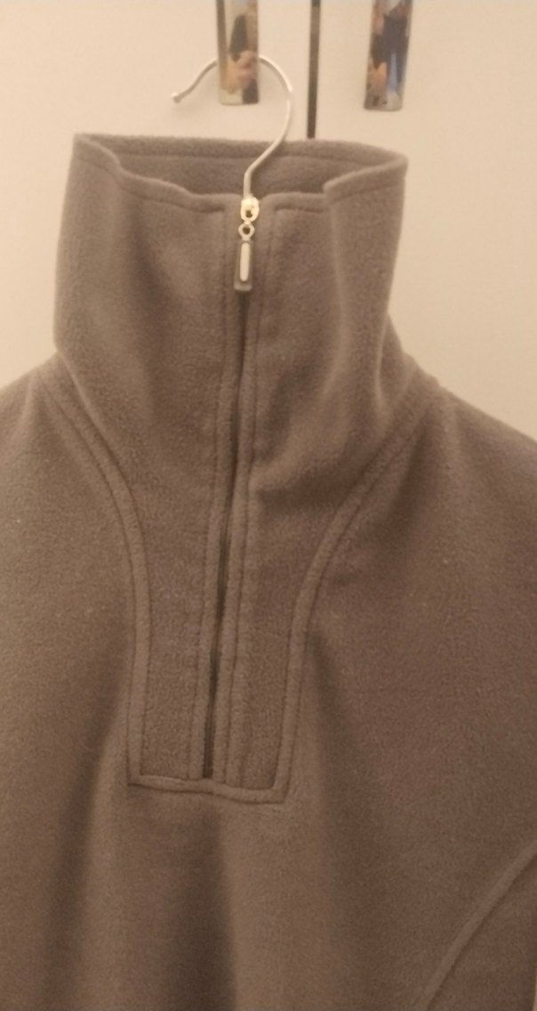 gri polar, yüksek yaka ve yarım fermuarlı, uzun kollu ve sade tasarımlı sweatshirt. Günlük kullanıma uygundur. ❄️