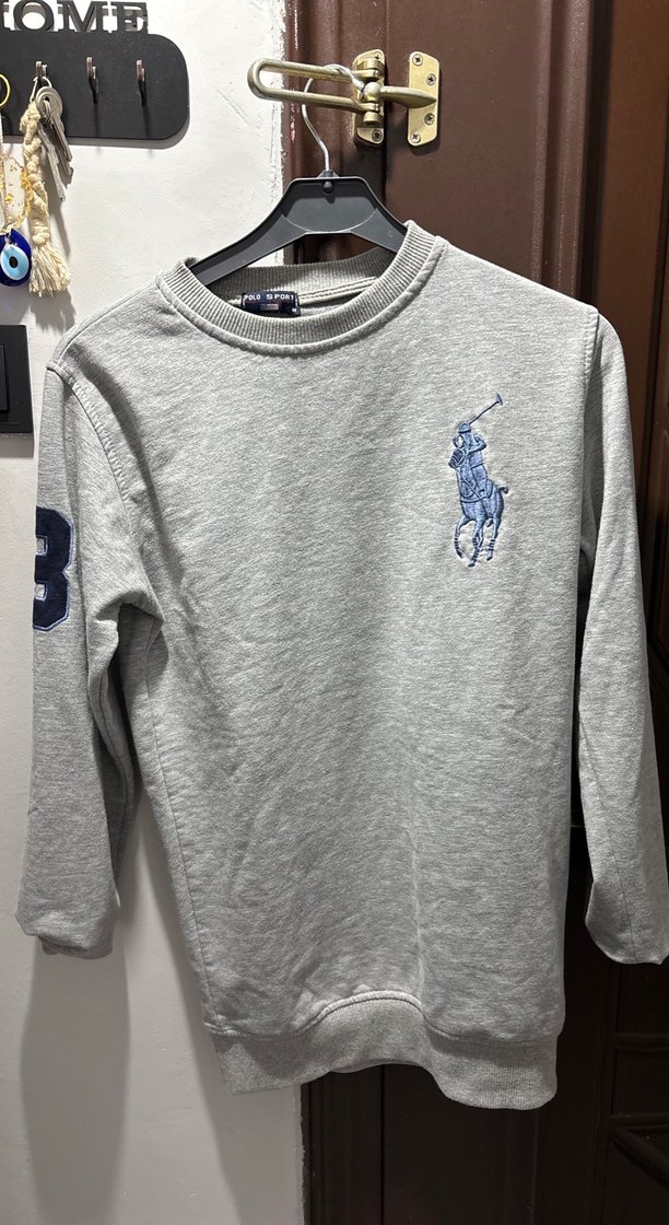 Gri Polo Ralph Lauren erkek sweatshirt, uzun kollu ve yuvarlak yakalıdır. Yumuşak, sıcak kumaştan yapılmış, baskılı logo bulunur ve rahat, sokak stili sunar.