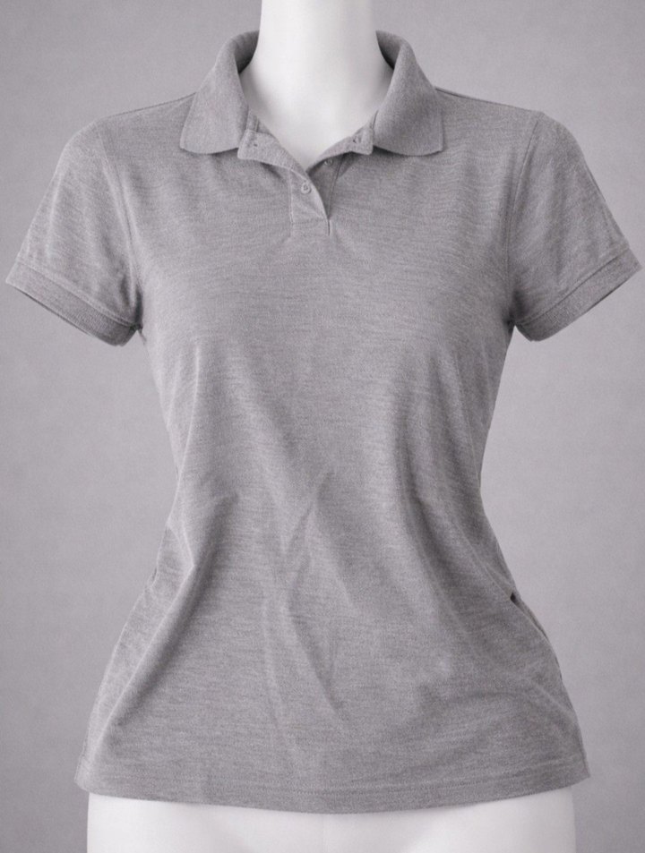 Gri renkte, yakalı ve kısa kollu kız polo tişört. Düz ve şık görünüm sunan sentetik kumaştan, regular fit kesimle üretilmiştir.