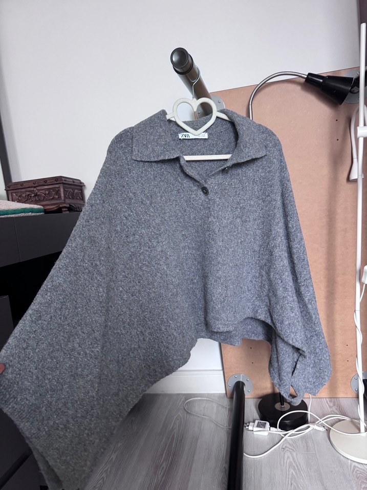Gri renkli, yumuşak yün örgüden yapılmış, bol kesim ve polo yakalı kadın kazak. Uzun kollu ve günlük kullanım için uygundur. Hiçbir kusuru yoktur tertemiz