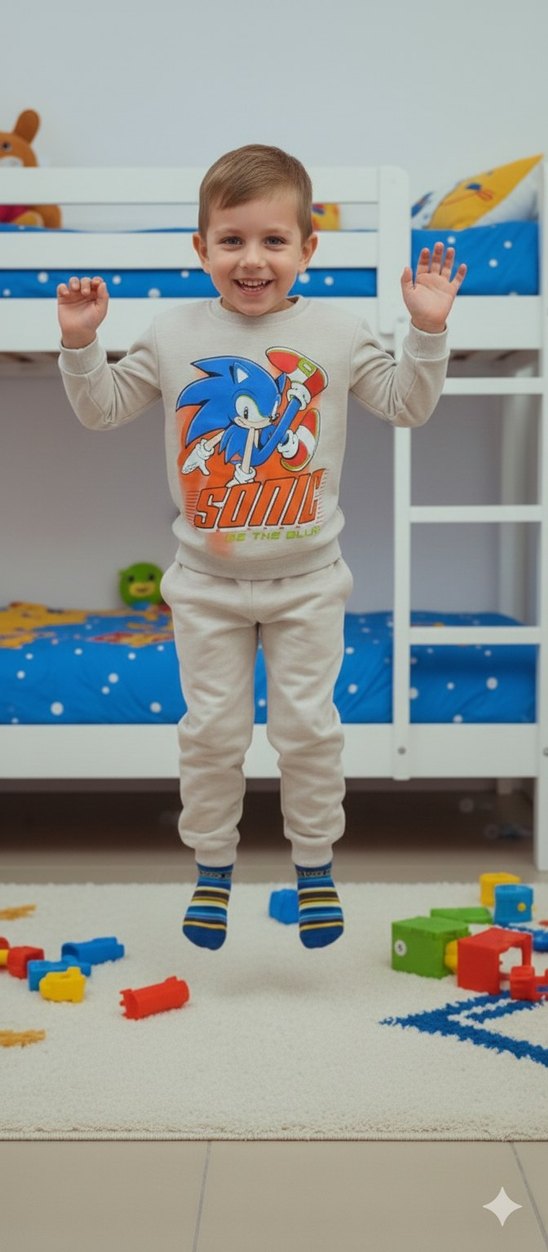 Gri, baskılı Sonic temalı sweatshirt ve eşofman takımı. Yumuşak kumaş, fitted kesim ve yapışkan bant detaylıdır. Trendy ve rahat bir stil sunar. 3-4-5-6-7-8-9-10 yaş #çocukeşofman
