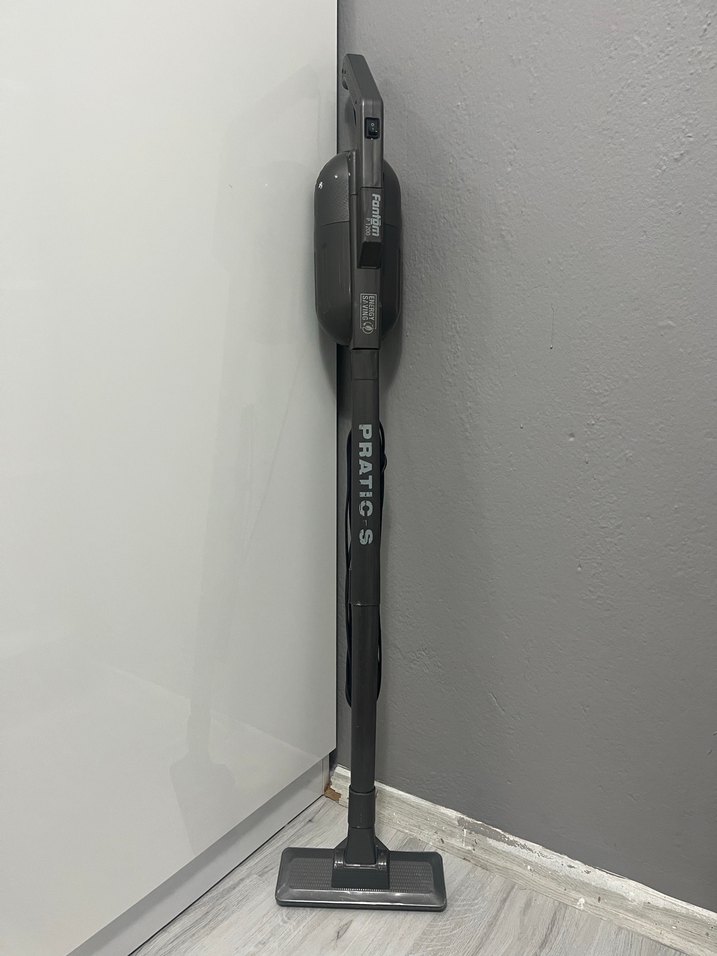 Gri renkli Pratic S dikey elektrikli süpürge, ince tasarımı ve etkili temizliğiyle kolay kullanım sağlar. Kompakt yapısı saklamayı kolaylaştırır. Çizikleri var görselde göründüğü gibi çalışmasında hiç bir sıkıntı yok