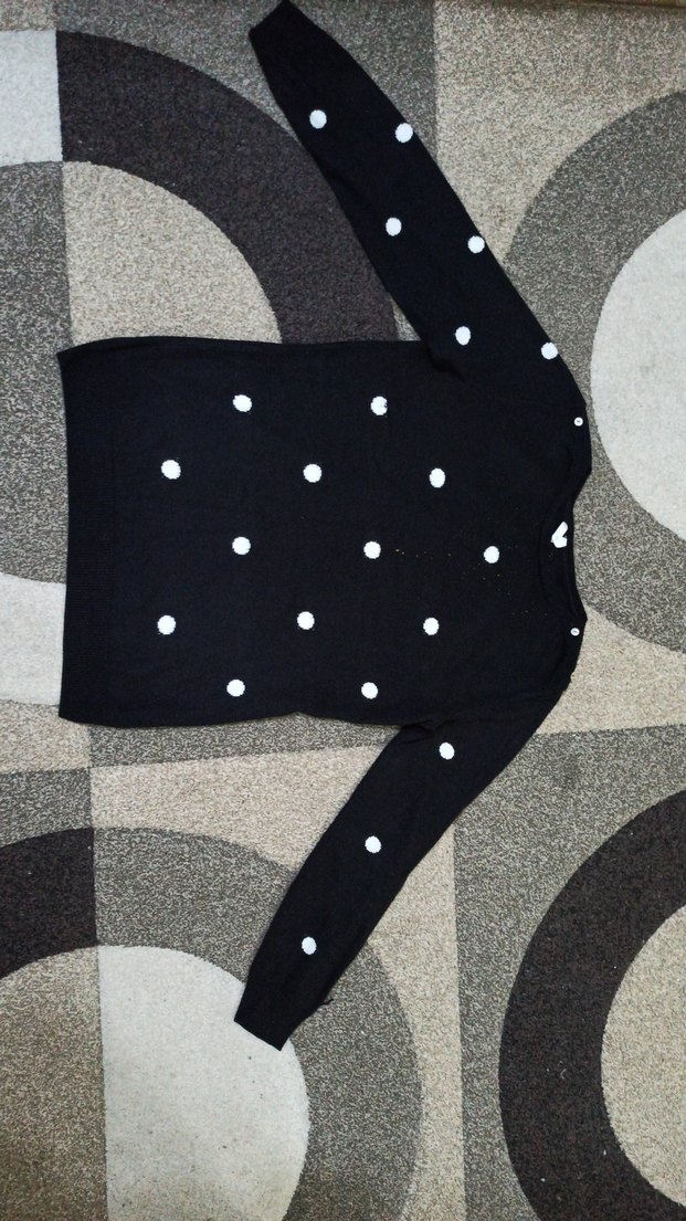 Gri renkte, beyaz puantiyeli, boğazlı ve uzun kollu kadın kazak. Yumuşak ve sıcak dokusu ile rahat bir günlük ve sokak stili ürünüdür.