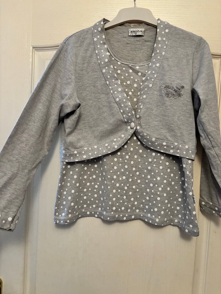 Gri Puantiyeli Kız Hırka ve Bluz Takımı
