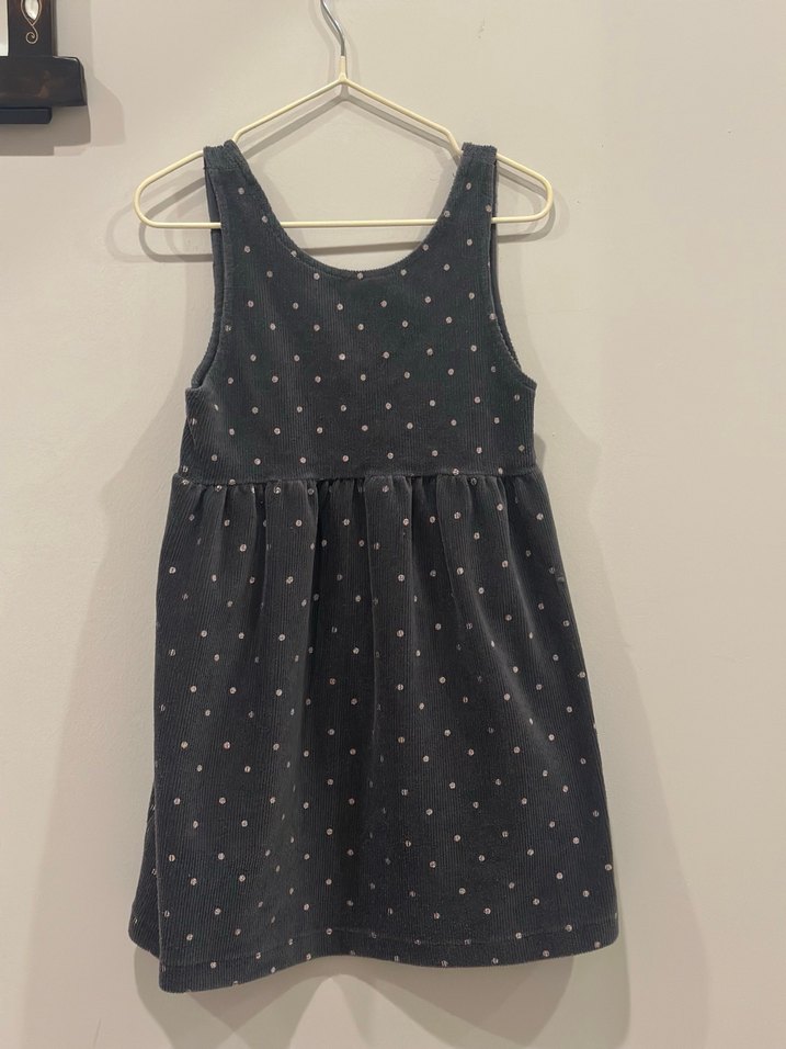 Gri Puantiyeli Kolsuz Kız Elbisesi