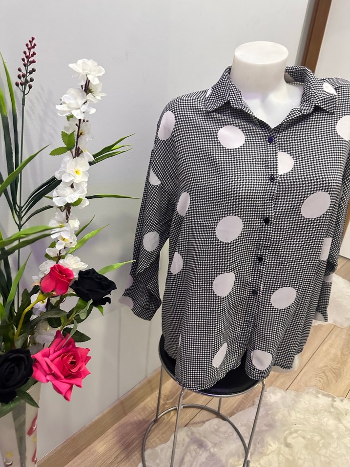 Gri Puantiyeli Uzun Kollu Kadın Gömlek