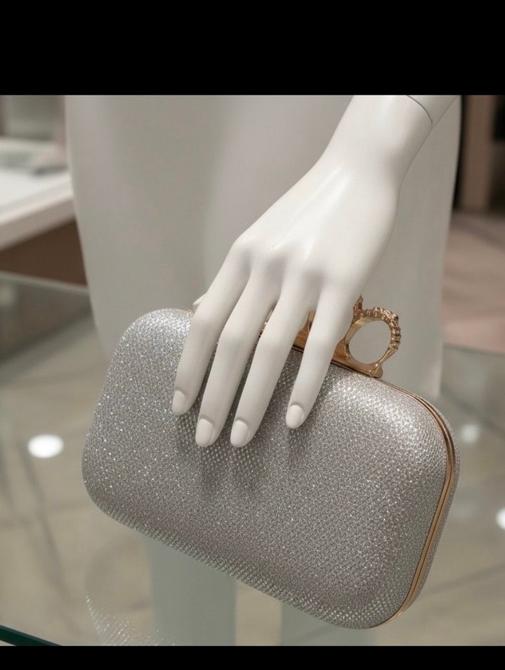 Gri yılan desenli ve pul detaylı sentetik kumaştan yapılmış portföy çanta. Çağdaş tasarımı ve altın renkli kapanışıyla düğün gibi özel günler için uygun. Kullanılmış yeni değildir görseldeki gibidir