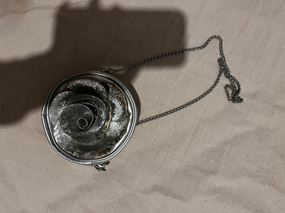 Gri Pullu Gül Detaylı Zincir Kadın Çanta