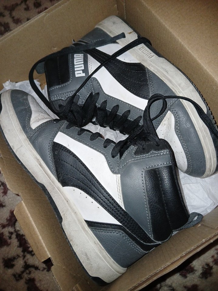 Gri Puma basketbol ayakkabısı, kauçuk tabanlı ve velcro detaylıdır. hiç bir sıkıntısı yok 37 numara