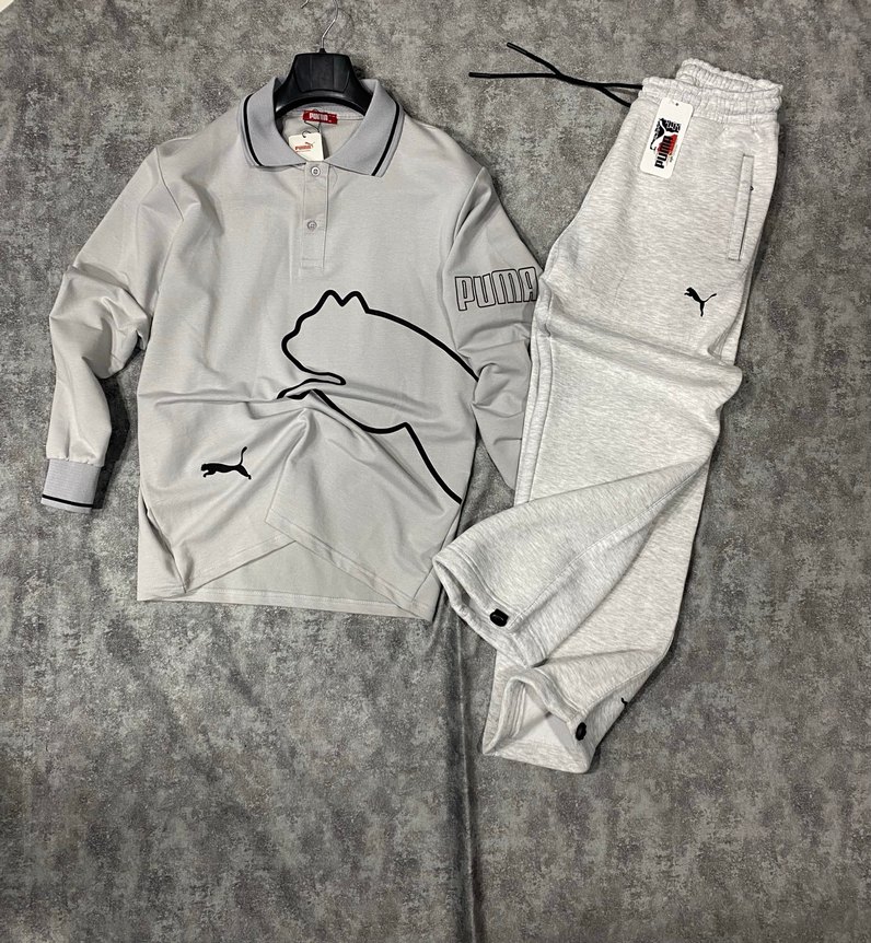 Gri Puma Erkek Pijama Takımı Uzun Kollu