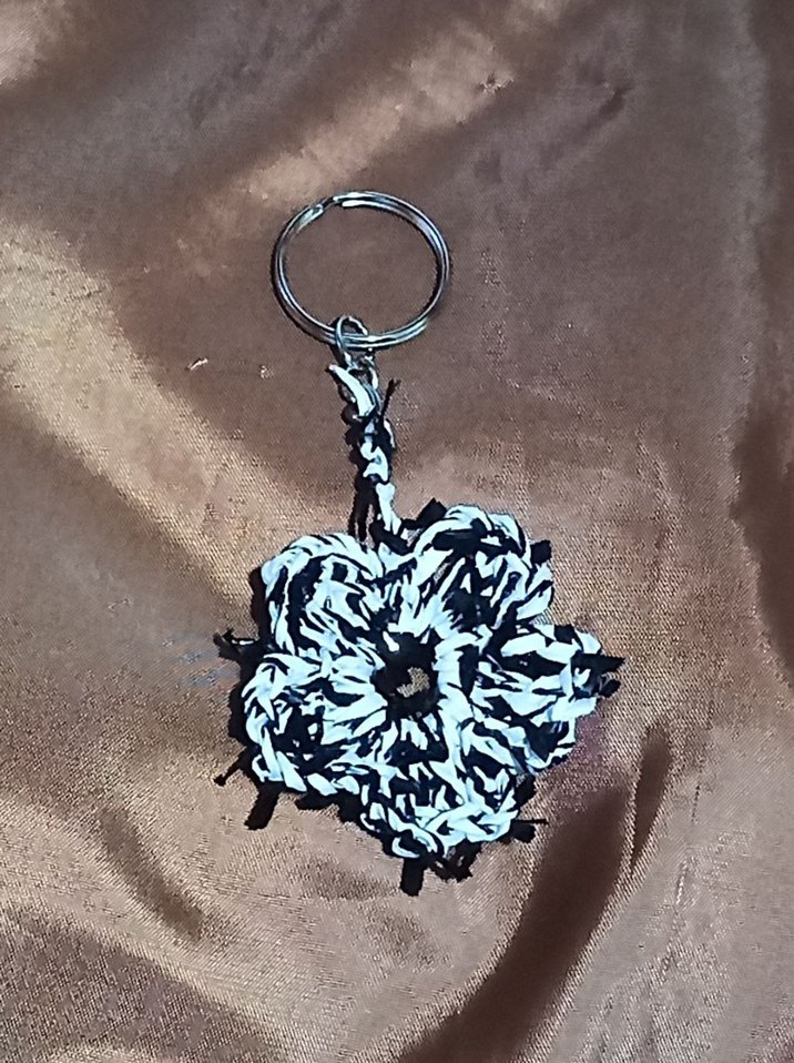 çiçek desenli anahtarlık Gri püsküllü, renkli ve bohem tarzda kadın anahtarlık, grunge punk ve retro stillere uygundur.