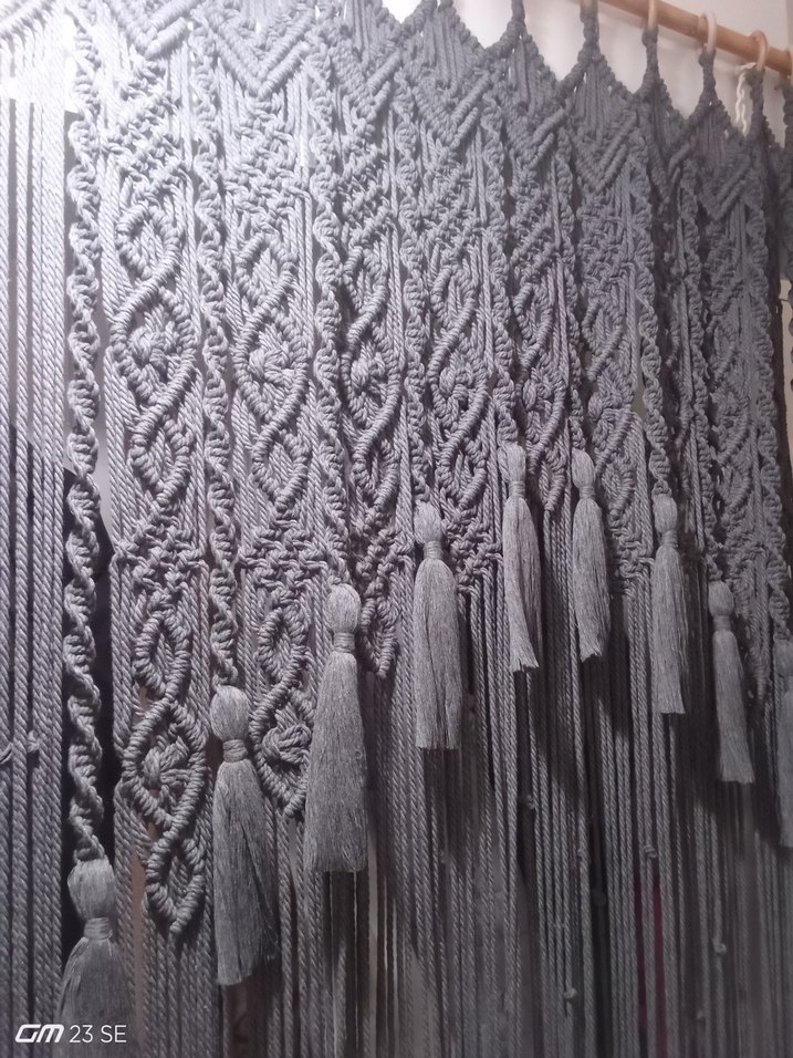Gri Püsküllü makrome perde