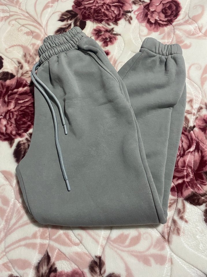 Gri renkli, bol kesim kadın eşofman altı, elastik bel ve bağcık detayıyla rahatlık sağlar. Yumuşak ve sıcak kumaştan, günlük kullanım için uygun sade tasarım.