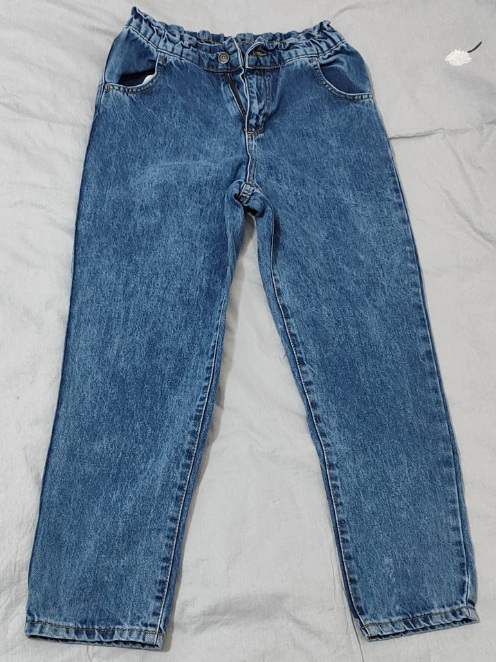 Bu mavi kot pantolonlar, rahat kesim ve midi boy ile günlük kullanıma uygun sade ve şık bir görünüme sahiptir. Gri tonlarında ve desensizdir.