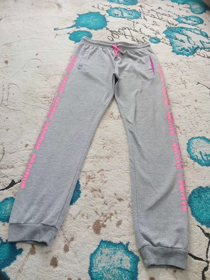 Pembe yazı detaylı, lastikli beli ve paçalı gri rahat kesim kız çocuk eşofman altı. Yumuşak sentetik kumaştan, spor ve günlük kullanım için uygun. hafif bi lekesi var başkada herhangi bir yerinde yırtıgı vs yoktur ♀️