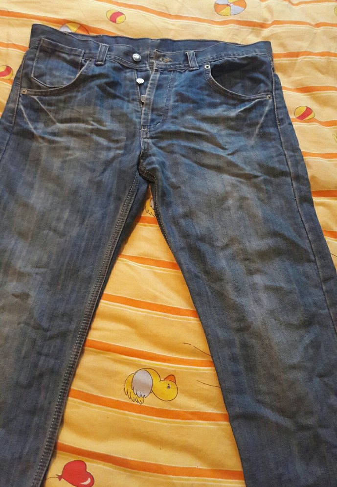 Gri renkte, düğmeli, rahat kesim erkek denim pantolon. Günlük kullanıma uygun, normal boyda ve desensiz tasarıma sahiptir.
