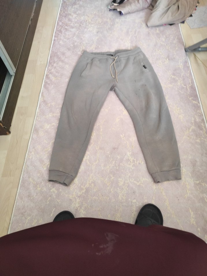 Gri renkte, rahat kesim ve normal boyda, yumuşak ve sıcak kumaştan erkek eşofman altı. Günlük kullanım için zahmetsiz şıklık sunar. ♀️eşofman altı az kullanılmış önde biraz lekeleri var fotoğrafta belirttim biraz renk solması da var çok sağlam kumaş yırtık sökük yok görüldüğü gibi dar paça