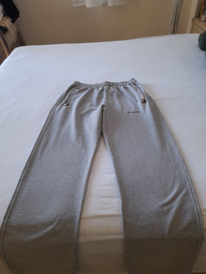 Gri renkli, rahat kesim ve orta boy erkek eşofman altı boy105cm bel çevresi 80cm bel lastikli ağ orta yükseklik 33cm en ufak kusuru yoktur tertemizdir