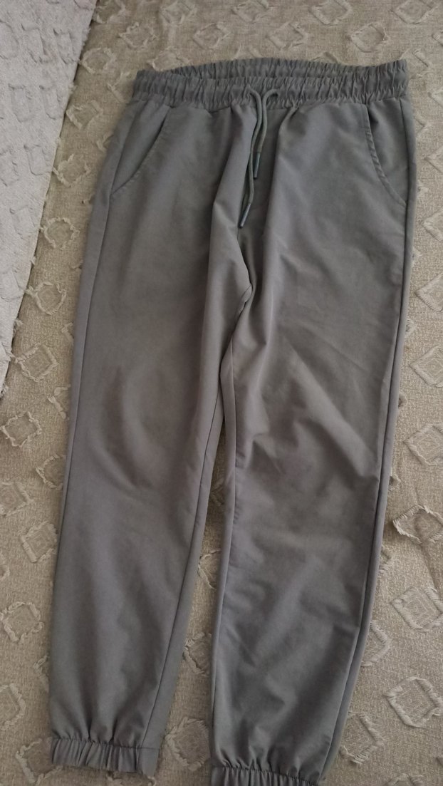 Gri renk, bol kesim erkek eşofman altı, lastikli bel ve ceplere sahip. Yumuşak sentetik kumaştan üretilmiş, günlük kullanım için rahat ve şık bir görünüm sunar.