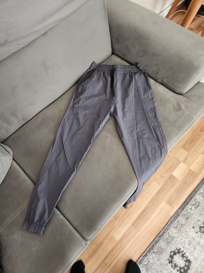Gri renkte, sentetik kumaştan yapılmış, rahat kesim ve normal midi boyda erkek outdoor eşofman altı. Genç ve trend stil için şehir tarzı ve dış mekan kullanımı için ideal. ️