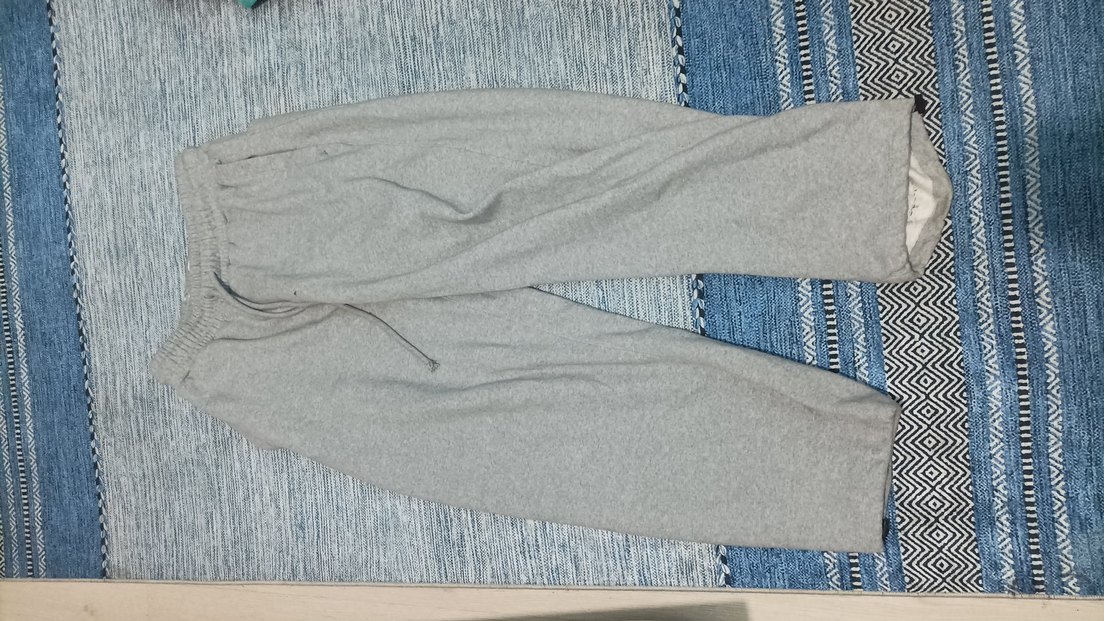Gri bol kesim eşofman, rahat kesimi ve dökümlü stiliyle, yumuşak denim kumaştan günlük kullanım için uygundur. Trendy ve rahat bir görünüm sunar.